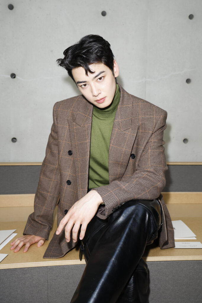 來到全黑穿搭,他有穿過不同材質的西裝,換成皮褸則變得型格,但整體造型依然以整潔為主。