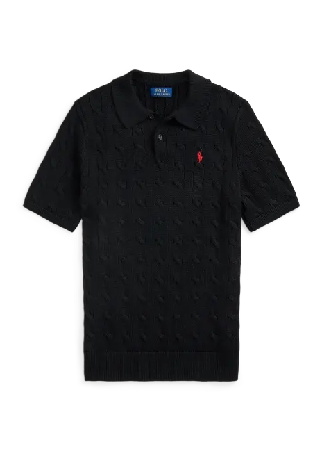 Cable-Knit Cotton Polo-Collar Sweater