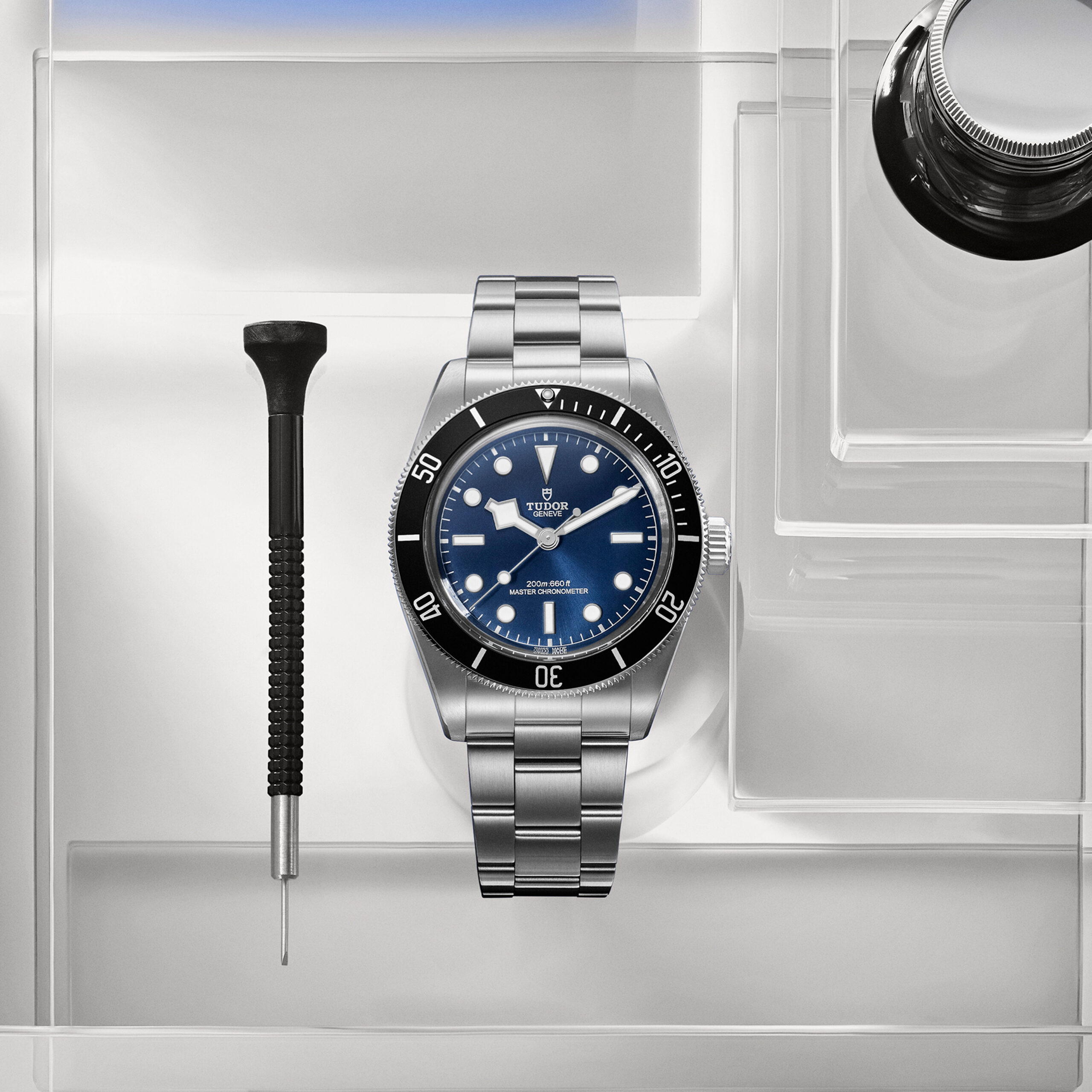 2024 年, Tudor 推出了全新的 Black Bay Ceramic “Blue” 錶款,採用 41 毫米的啞黑色陶瓷錶殼,配搭色調獨特的藍色錶盤,錶盤上的藍色,正好與 Visa Cash App Racing Bulls 一級方程式賽車隊的制服顏色完全匹配。Black Bay Ceramic “Blue” 錶款具備招牌的「雪花」指針,內置品牌自家研發的 MT5602-1U 型機芯,已獲取瑞士聯邦計量科學研究院(METAS)大師天文台精密時計認證。